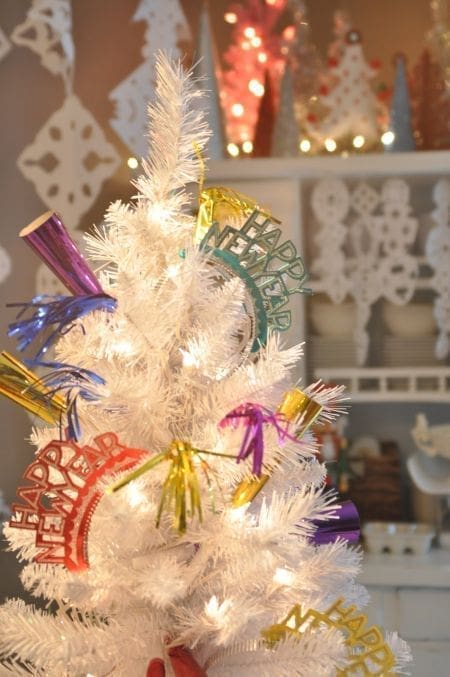 In order to keep major decorating to a minimum I suggest leaving your Christmas tree up and trading out the ribbon and ornaments for extra New Year party hats, party blowers, and headbands.