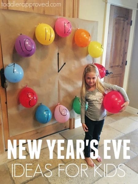 Okay, let’s jump right in and give you some fun activities to keep you and your little ones (don’t worry – they are just as fun even if you don’t have kiddos) busy until the clock strikes midnight. One of my favorite countdown activities is the balloon pop countdown — the blog Toddler Approved has the perfect example of how to display this in your home. You will need to pick up some uninflated balloons from The Party Place and some balloon confetti for this one. In this example, colorful balloons were used but I think one solid color or clear with multicolor balloon confetti would look absolutely perfect as well.