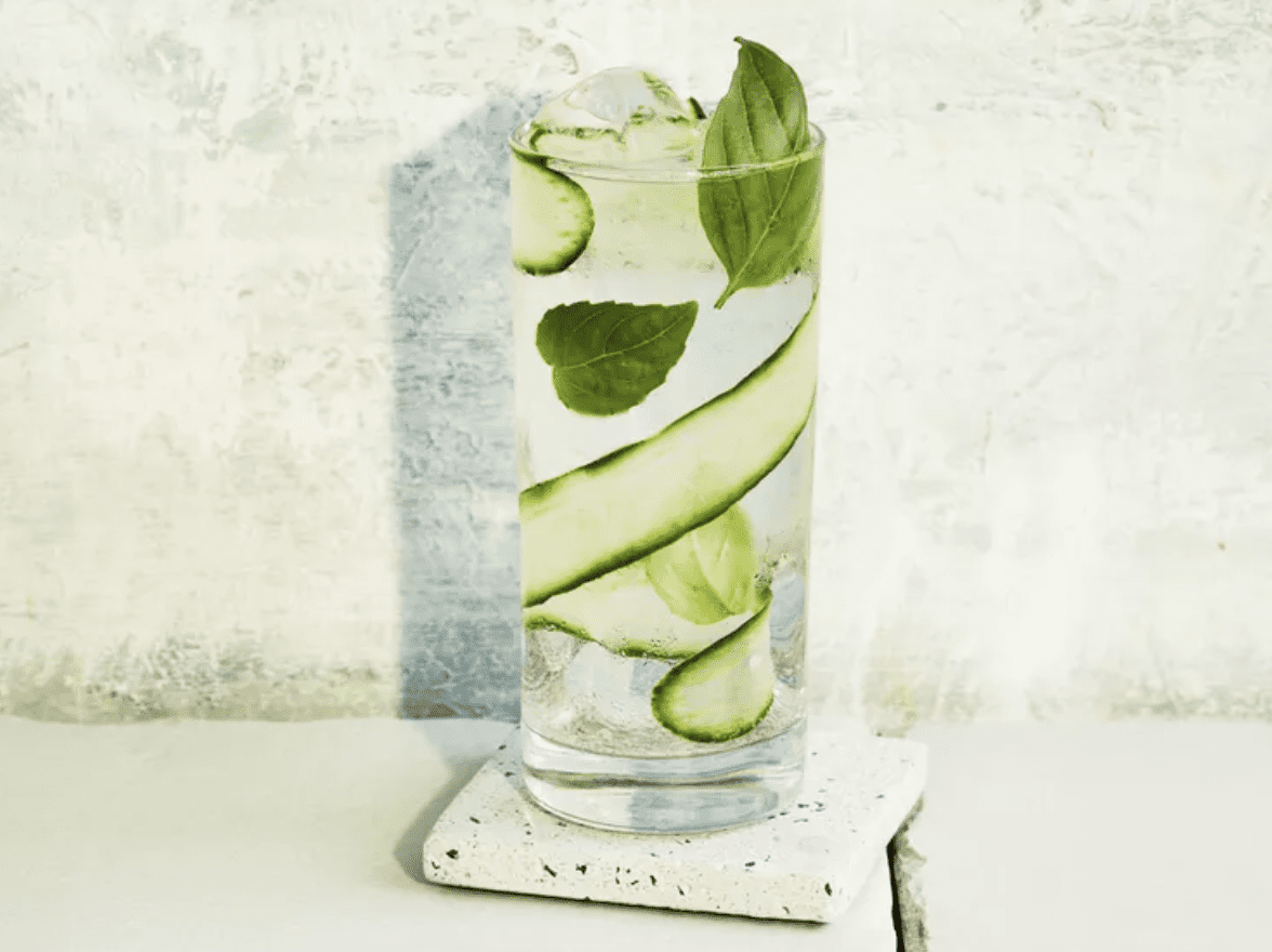 Line a highball or wineglass with cucumber ribbon; fill the glass with ice cubes. Add Seedlip Garden 108 and tonic water. Garnish with basil.