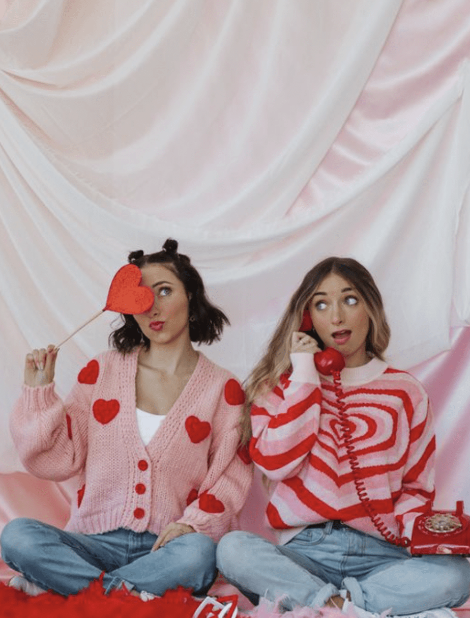 Keeping the same trail of thought in line, let’s do this dinner party style. We all love to dress on theme, so that is exactly what I am suggesting you do too. Think hearts, pinks, reds, and all that cheesy, cliché, Valentine’s Day goodness. Something like the photo below is a casual but on-theme option for sure.