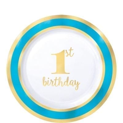 1st Birthday ‘Blue and Gold’ Small Plastic Plates (10ct)