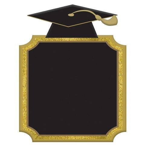 Customize Your Graduation Decorations With This Chalkboard Sign With Graduation Cap. This Chalkboard Features A Glittery Frame And Is Topped With A Classic Graduation Cap. Perfect For Sending Off Your Graduate To Their Next Big Adventure. With A Black And Gold Color Scheme This Sign Can Match With Most School Colors.9 x 7 in. Graduation MDF Chalkboard Stand – Gold.