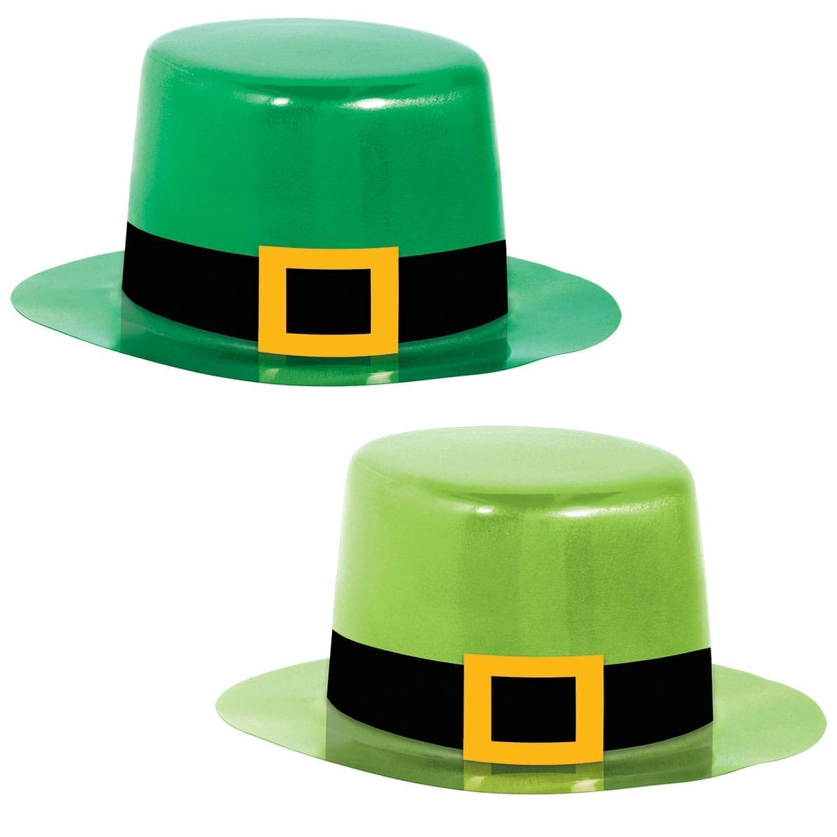 Get cute in clover in our assorted plastic mini St. Patrick’s day leprechaun hats in green. Perfect for the wee lil’ ones in your life, our assorted mini St. Patrick’s day hats are perfect for adding some leprechaun style to your party without breaking your budget. These tiny plastic leprechaun hats come in two shades of green and feature a black hatband and gold buckle. Features St. Patrick’s day plastic mini top hat assortment; Specifications Color: Green; Dimension: 2.5″ H x 4.25″ W x 4.5″ D; Weight: 1.25 lbs; .