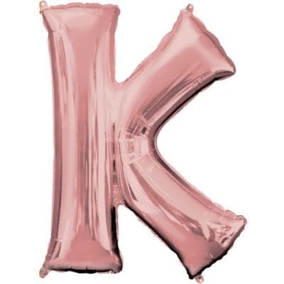 33″ Packaged Anagram Rose Gold letter K Supershape foil balloon.