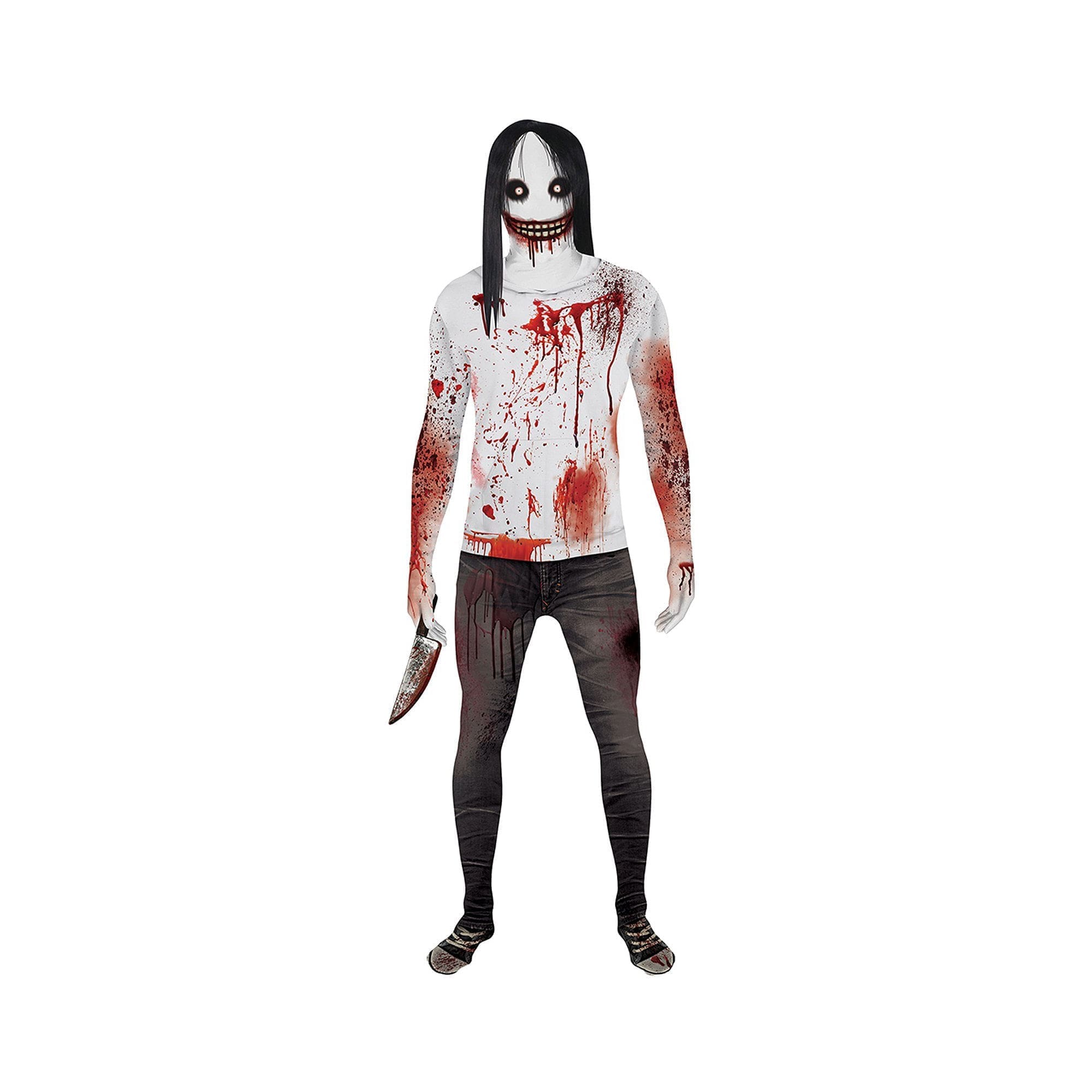 This adult morphsuit looks just like one frightening killer from head to toe and it features sublimated elements that will transform you into the freaky murderer. Once you look the part, you too can go out there and get yourself a big plate of french fries with ketchup!