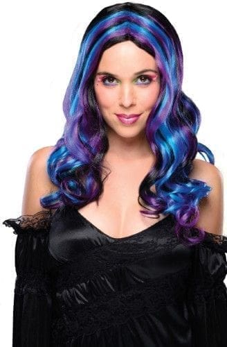 Adults 80s Long Black Neon Blue Purple Punk Rave Costume Wig