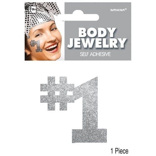 Amscan 396126.18 Glitter No 1 Body Jewelry, Silver – Pack of 24