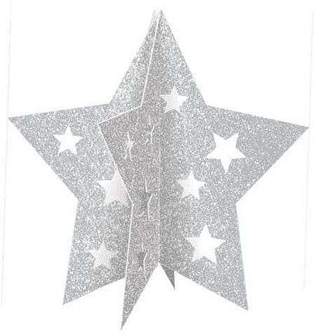 Your table will stand out with these 5 in. red, silver and blue 3-D centerpieces. Each star shaped centerpiece is cover in glitter. These card-stock centerpieces are easy to assemble and can be used alone or as an additive to your decor.