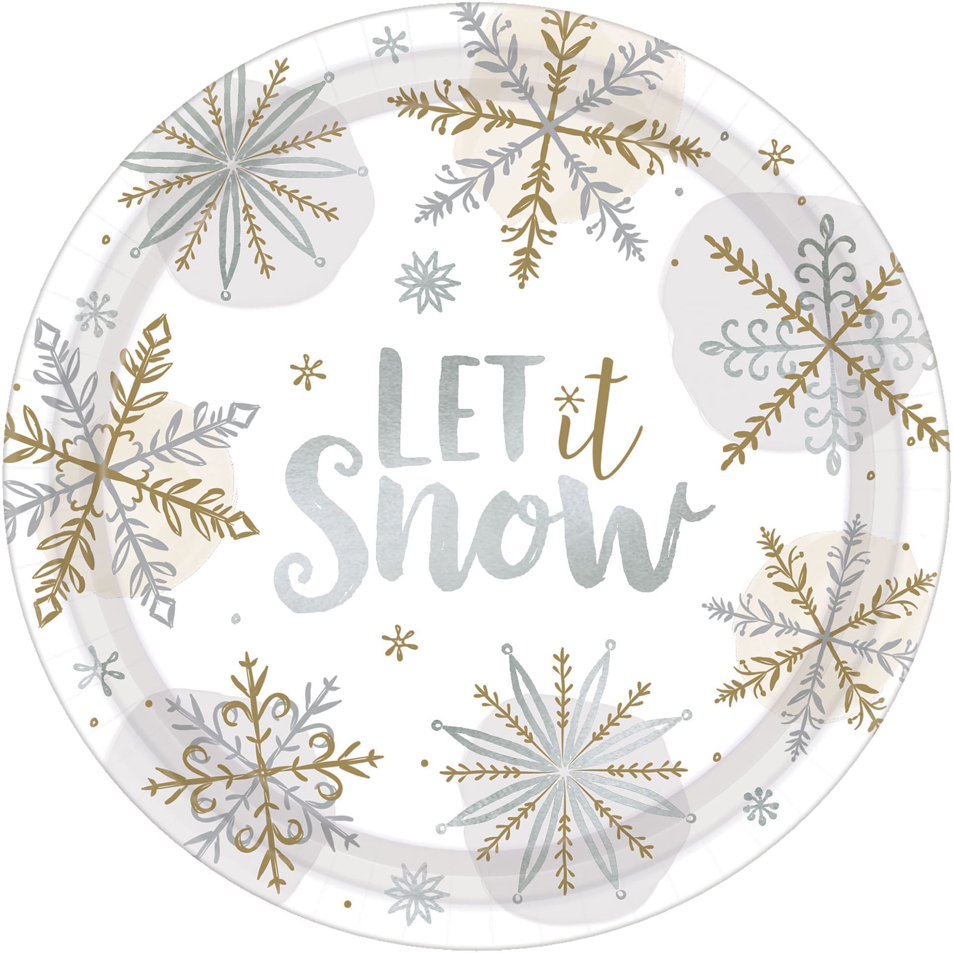 With fun snowflake graphics and the words “Let It Snow,” these disposable plates make a great addition to any holiday party. The plates are made of paper and can be simply tossed once you have finished eating. Paper construction is great for casual meals. Offers a snowflake pattern and the words “Let It Snow” to get guests excited for the holiday season. Disposable.
