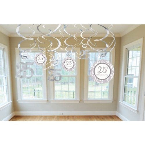 Elegant Decorative Swirl Anniversary Party Supplies, 17.7cm x 12.7cm, Silver/White, 12ct