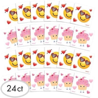 Amscan Emoji and Cupcake Valentine’s Day Tattoos (24-Count 7-Pack)