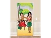 1 door banner*Door banner made of plastic designed with island boy and girl with face and armholes cut out*Be happy hula honeys with our luau dancers photo door banner*Just set up to the main entrance of your Hawaiian luau or pool party and grab a camera! Features a beach scene with an island boy and island girl with cutouts for the face and hands, Made of printed plastic photo banner, Measures 72″ x 36″, Available in pack of 1.
