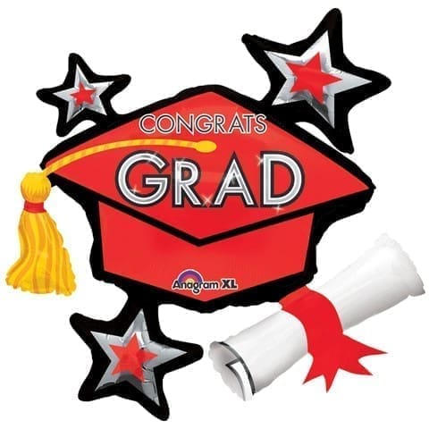 Let the graduate know how proud you are of their accomplishment. Celebrate the achievement with this Red Star Graduation Cap Graduation Balloon. It reads “Congrats Grad” in large letters on a red mortarboard-shaped background. Bordered by matching red stars and a large diploma, this 40 inch x 31 inch reusable balloon looks great hanging from the ceiling or as a table centerpiece. Warning: Balloons arrive uninflated. Always dispose of balloons properly. Do not release balloons into air.