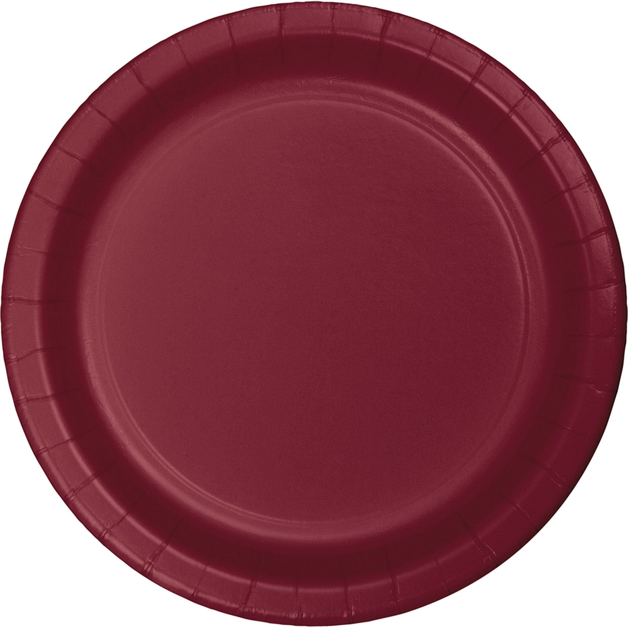 Complement the theme of your event space with these Touch of Color Banquet Plates in Burgundy. Use them when serving appetizers, entrees and desserts at school functions, corporate parties or gatherings with friends. These 10″ plates are made of sturdy material and can be recycled or thrown away after use for easy cleanup. The simple design is ideal for mixing and matching with other shapes, sizes and colors. The versatile look also coordinates well with a variety of decor and supplies in the same shade (each listed individually).