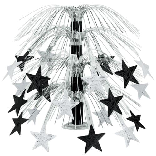 Beistle 1-Pack Star Cascade Centerpiece, 18-Inch, Black and Silver