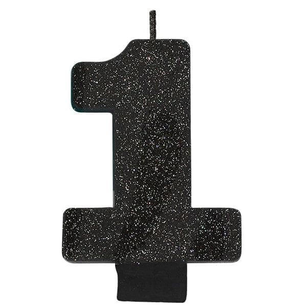 Black #1 Birthday Glitter 3.25″ Numeral Candle