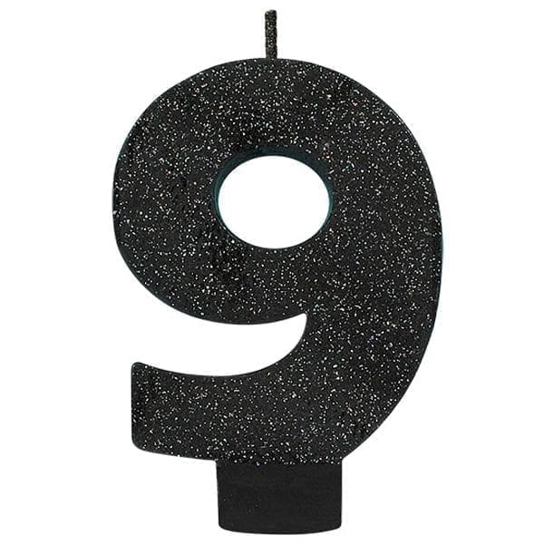 Black #9 Birthday Glitter 3.25″ Numeral Candle