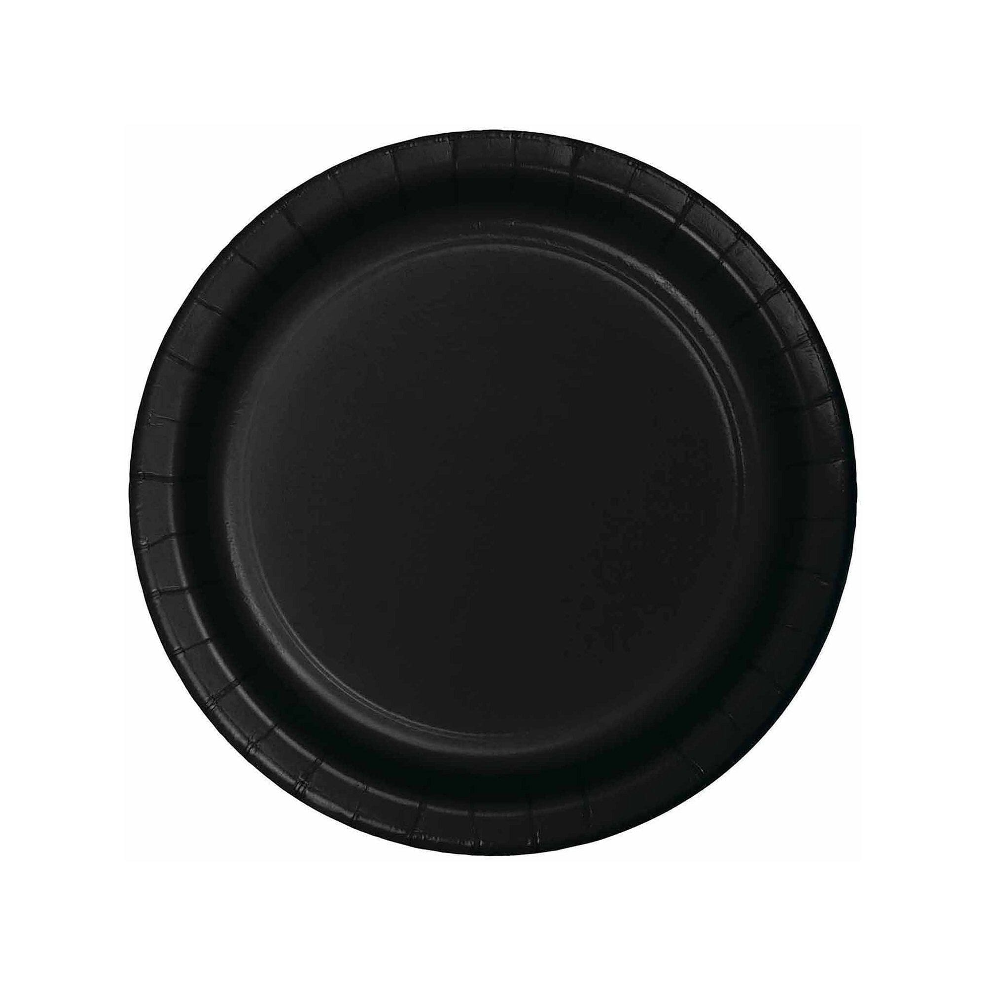 Get ready to serve delicious appetizers, snacks, or desserts to party guests with the Black Dessert Plate. The 7″ round paper plate is the ideal size for a slice of cake, and the black color makes a lovely addition to printed theme supplies and decorations. Sold in packages of 75, the disposable plates are an ideal complement to the tableware at any number of year-round events.