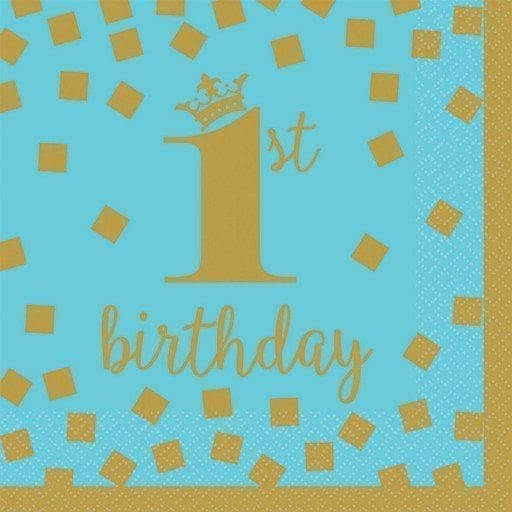 1st Birthday ‘Blue and Gold’ Premium Lunch Napkins (16ct)