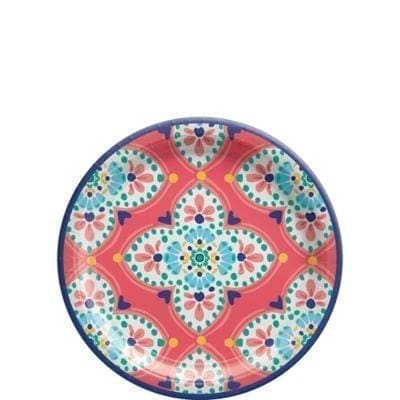 These plates feature a white quatrefoil with colorful floral patterns and a peach outline. With their serene patterns these plates are sure to bring chill summer vibes to your next soiree. Boho Vibes Floral Quatrefoil Paper Dessert Plates product details: 8 plates per package 7in diameter Made in the USA.