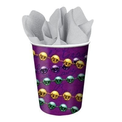 Have a fabulous Fat Tuesday Party when you serve up great Cajun food for good friends on our festive New Orleans style Bourbon Street Paper Goods. Our brightly colored Mardi Gras Bourbon Street Paper goods feature the classic colors of Mardi Gras and icons of this fun filled party theme. Our Bourbon Street 9oz Paper Cups come 8 per pack. Please order in increments of 1 pack.