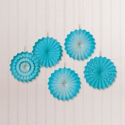 Caribbean Blue Mini Paper Fan Decorations, 6in, 5ct