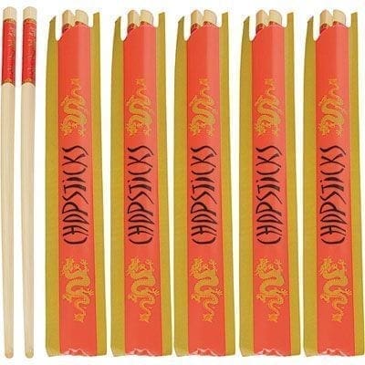 Add some festive flair to your feast with Chinese Chopsticks! These wooden chopsticks feature red and gold decorative bands and come packaged in matching paper packaging. The chopsticks are washable and reusable making them great to hold on to even after your Chinese New Year dinner! Chinese Chopsticks product details: 6 pairs per package Each measures 9 7-8in Wooden.