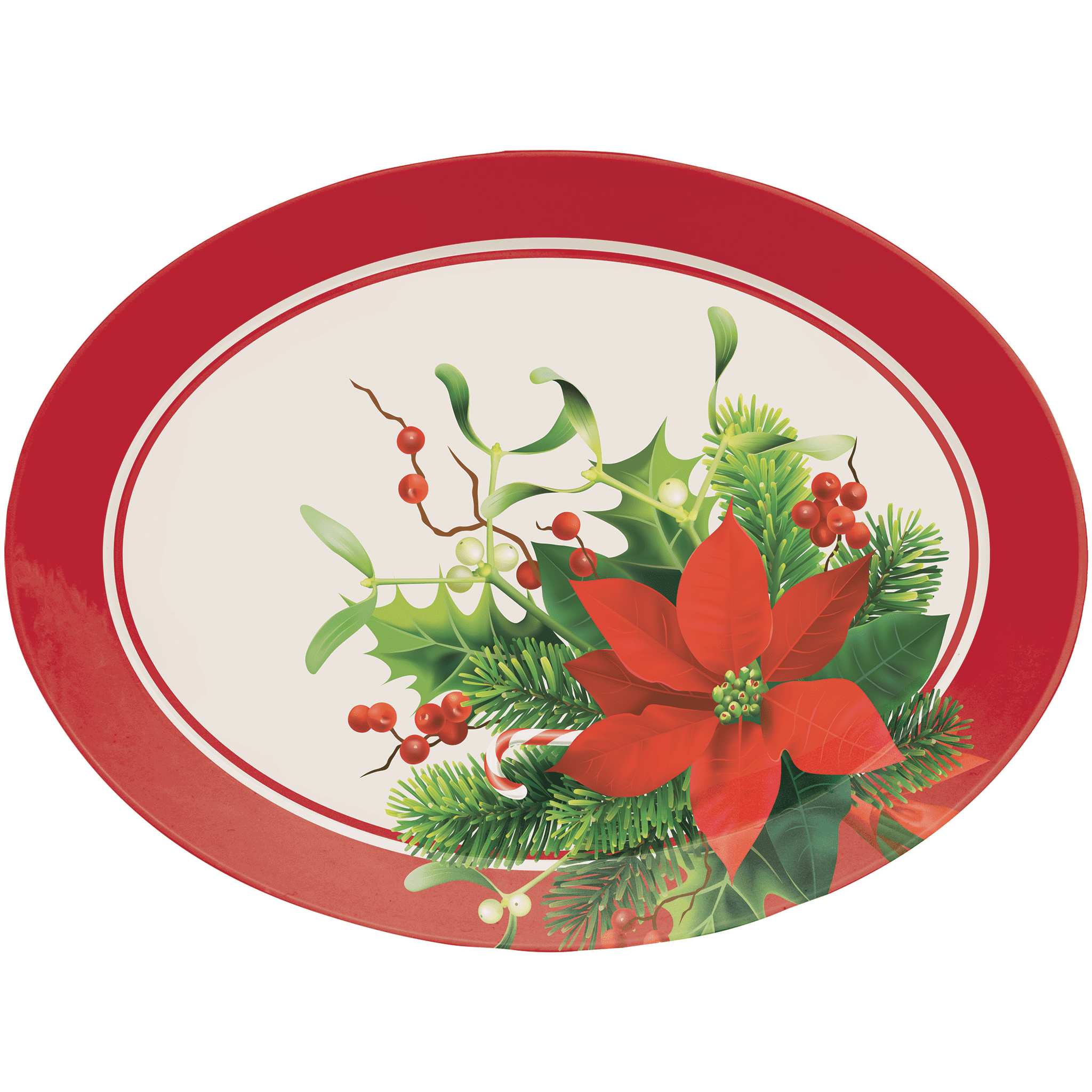 Tray Shpd 12/1Ct Pl Oval Christmas Poinsettia.