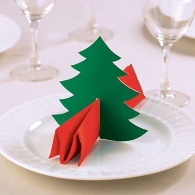 Add a decorative touch to your holiday tablescape with Christmas Tree Place Card Napkin Holders! These dark green cardstock cards are shaped like trees and have a blank surface that you can customize with pens glitter pom-poms and more. Write a name on each card and place your napkin of choice in the slot so the trees stand upright. The seating arrangement will be no question when you set your table with these place holder cards! Christmas Tree Place Card Napkin Holders product details: 12 per package 5 1-4in wide x 5 1-2in tall.