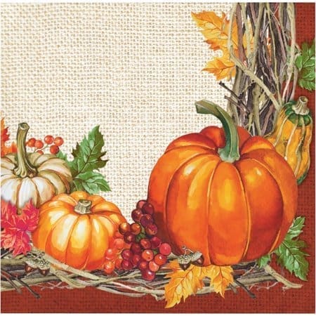 Decorate your Thanksgiving table in festive style with these beverage napkins. They are sure to create a warm and inviting tablescape with its fresh and appealing look. Mark the change of season to your dining space with these lovely napkins. Features: Perfect for the birthday, dinners, banquets, picnics and more Ideal for weddings, Easter, birthdays, bachelorette parties, school parties, banquets, and more Premium 2-ply napkins feature a simple, but elegant design Perfect for a staple for every kitchen table, breakfast nook and dinner table These disposable napkins can be coordinated with our other party supplies Dimensions: 10″H x 10″W x 0.055″D Material(s): paper Pack includes 192 of the item shown.