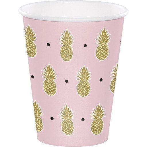 Club Pack of 96 Baby Pink and Brown ?Pineapple N Friends” Hot Cold Cups 5.6″