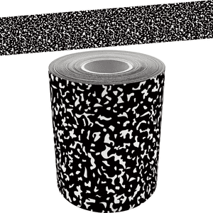Use this Composition Straight Rolled Border Trim to liven up your classroom! Create fresh looks for bulletin boards, windows, walls, and class projects. Mix and match with coordinating products (stickers, notepads, awards, etc.) for a classroom theme. 50 foot continuous roll. (3″ x 50′)