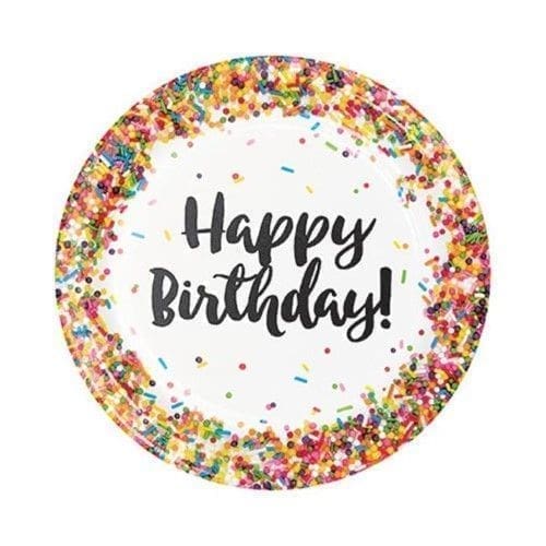 Add some festive fun to your birthday party with the Confetti Sprinkles Dinner Plates. These colorful plates feature a confetti style border with a “Happy Birthday” phrase in the center. Sold in packs of eight, these plates coordinate perfectly with other Confetti Sprinkles party supplies.