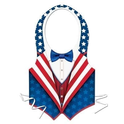 Looking for the best selection of Costumes for any occasion – Then you have come to the right place. Choose this item made by the premier manufacturer for costumes props and theatrical wear. We supply ice shows circuses TV amusement parks Broadway and almost every major Hollywood movie studio with all their theatrical needs. From funny masks and accessories to unique life like mascot and animal costumes we have them all. Satisfaction Ensured. Paper bar vest slides over the head and tie around the waist. Red white and blue One size.