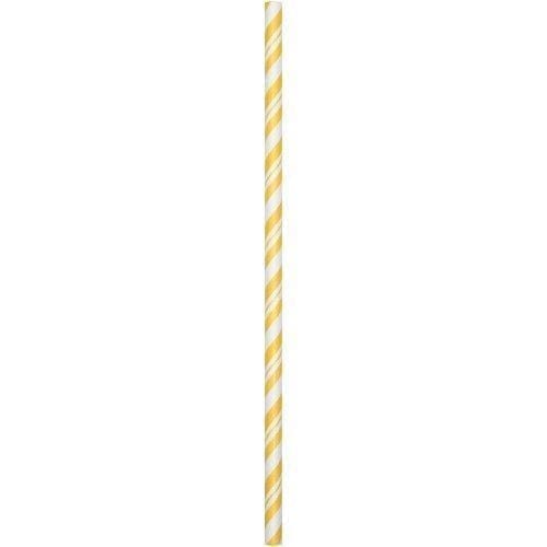 Allow your customers to sip their drinks in style with this Creative Converting 329621 7 3/4 jumbo School Bus Yellow paper straw. Featuring an attractive spiraled School Bus Yellow and white stripe design, this straw is perfect for everything from a…