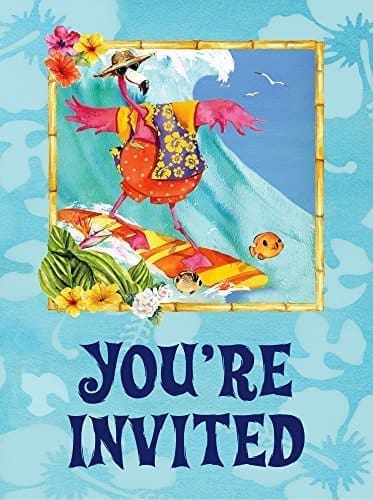 A touristy flamingo catches a wave and enjoys ice cream with this fun tropical pattern. Ideal for beach themed parties, summer socials and luaus of all kinds. From Creative Converting. See coordinated paper plates, napkins, party cups, decor and more in this same design. With the most seasoned staff of design experts in the party industry, you know you are getting the best in disposable paper and plastic goods, decorations and party accents for every holiday and all occasions. Coordinate your favorite patterned theme with the largest selection of perfectly matched solid colored hues from Creative’ s Touch of Color collection. Talk about choices. Tourist flamingo themed party invitations, Includes 8 invites and envelopes, Just fill in prompted areas on back for the guest of honor, dates, times and places and send, Give guests a chance to RSVP so you can plan for the party, Flamingo Fun themed party decor coordinates with Creative’ s Touch of Color solids in hot magenta and Bermuda blue