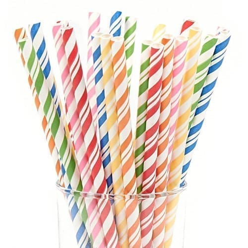 Add a vibrant touch to your party beverage with the Striped Straws featured in Assorted Colors. These party straws are made of paper and are featured in a variety of colors. Sold in packages of 24, this festive addition coordinates with many different th.Made of paper.Straws measure 7.75 x .25.24 Assorted Color Paper Straws.