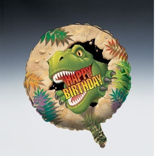 Your child’s party will look even better with the addition of our Dinosaur Balloon. It contains the image of a Tyrannosaurus Rex with the words Happy Birthday printed in between its jaws. The eighteen inch balloon is sold individually and is shipped flat. Use a helium tank to fill it up.