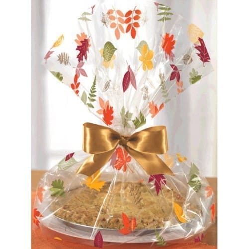 Tie up your pie in cuteness with Fall Pie Treat Tray Bags! These clear plastic wraps feature cute and colorful opaque prints of autumn leaves. Cover freshly baked pies and treats with fun festive wrappings for your fall celebrations. Fall Pie Treat Tray Bags product details: 6 per package Fit up to 10 1-2in diameter plate 18in wide x 16in tall Food-safe plastic Tray and ribbon not included.