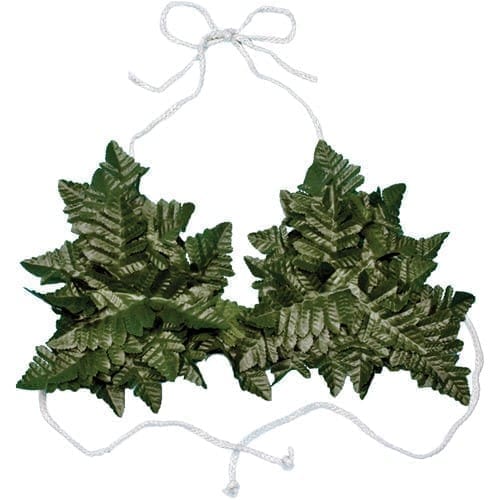 Fern Bikini Top Adult Halloween Accessories can be worn with a variety of costumes to give you an exotic look. Made of a combination of EVA foam, silk and a poly-cotton blend, this Halloween costume accessory can give you the look of a forest-dwelling nymph, fairy or other character. It comes in one size that fits most adults.