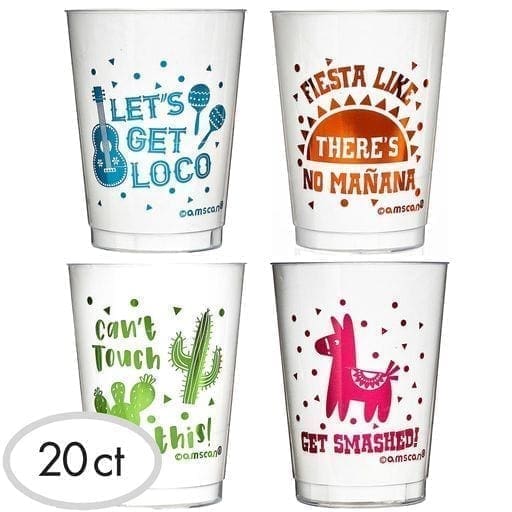 Fiesta Plastic Cups, 20 Count, Featuring 4 Festive, Colorful Designs