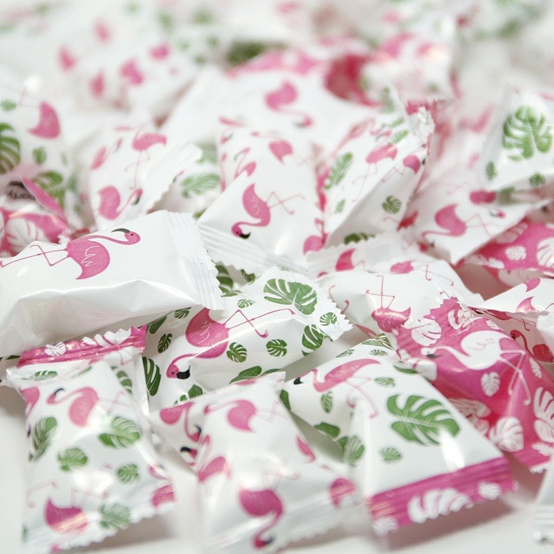After Dinner Mints for Every Event! These classic butter candy mints make an enticing tropical table decoration. Just set these flamingo themed mints out on the tables for a festive touch that your guests will notice and enjoy. One 7 ounce package of approximately 50 mints. Mints are wrapped individually. Flamingo wrapper design. Made in the USA. Gluten free and Dairy Kosher. Ideal for your luau themed dances, corporate parties, or events. These buttermints will be a hit at your party or event!