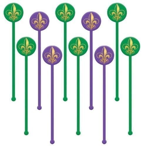Fleur De Lis Mardi Gras Plastic Drink Coffee Stirrers 18 Ct