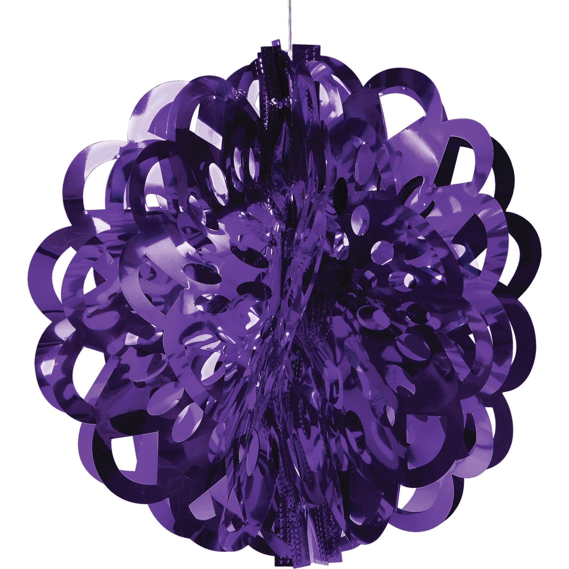 Shimmering Purple foil is die-cut and shaped to create the festive Purple Foil Ball, the perfect decoration for holidays, birthdays, showers or everyday entertaining. Measuring 16 inches in diameter, this decoration is easy to hang from ceilings, doorways or windows or it can be added to tabletop centerpieces for bright, twinkling accents. Sold individually, the foil ball can be combined with other colors to match the occasion or party supplies. Gender: unisex.