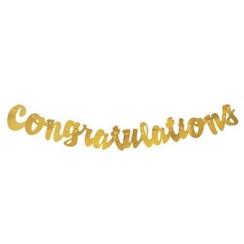 Our Foil Gold Script Congratulations Banner will give your celebration a special shine! Great for any graduation party or engagement party, this 3.5-foot banner reads “Congratulations” in shiny golden letters. Decorate the easy way! Use the attached strings on both ends of this letter banner to hang it on your wall, in a window, or in a doorway. Add more style to a big celebration with the rest of our budget-friendly congratulations party supplies.