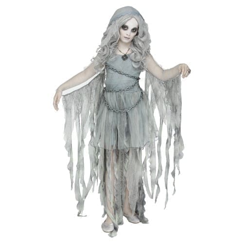 Are you a lovely young lady who doesn’t seem to come alive until the middle of the night? If this is the case, consider bringing home this Girls Enchanted Ghost Halloween Costume! This item features a grey hooded gown with chain. Brush off the cobwebs and get yourself into a spectacular spirit look this season. Pick up our Girls Enchanted Ghost Halloween Costume and haunt the living this holiday. Available at CostumeKingdom.com!