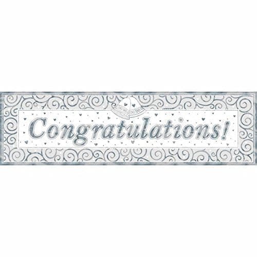 Match that glitter on your big day with the décor. Decorate with this Giant Metallic Wedding Sign Banner for that glitzy touch on your wedding day. Silver Color Design, Metallic with design print, Measures 65″ x 20″, Decks your party in fun