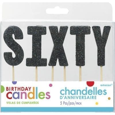 Glitter Black Sixty Birthday Toothpick Candle Set 5pc Party Supplies