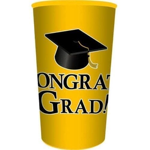 Yellow Graduation Plastic Cups are an affordable stemware solution that adds an extra special touch to your graduation party. Heavy-duty cups can be hand washed and reused over and over again. Each cup holds 22 oz. and is sold individually. The Yellow Graduation Keepsake Cup makes set up easy, and clean up a breeze! Gender: unisex. Pattern: Letters.