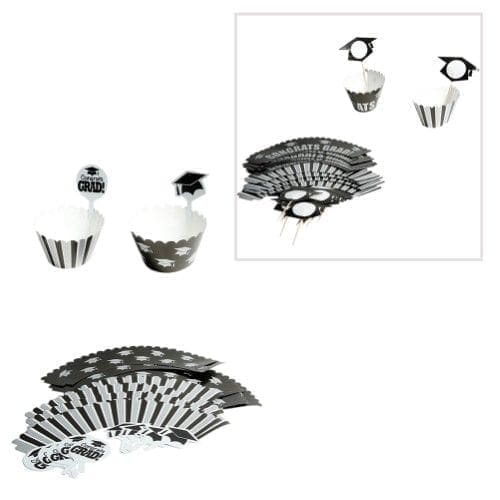 Celebrate Your Graduate In Style. Treat your hardworking grads with Graduation Cupcake Wraps With Toppers! These adorable black and silver graduation baking wraps and toppers are perfect for the graduate that loves sweets. Dress up your favorite cupcakes during open houses and graduation parties for treats your guests will love. Graduation cupcake kit includes: 12 wraps and 12 toppers. Wrappers fit medium to large cupcakes. Wraps are not liners, intended for decoration only. Plastic toppers are approximately 2 1/4 tall. This is your graduates time to shine! Shower your favorite graduates with fun favors and toys to commemorate this special time in their lives. Stock up on the graduation party and open house supplies you need to celebrate your graduate’s success!